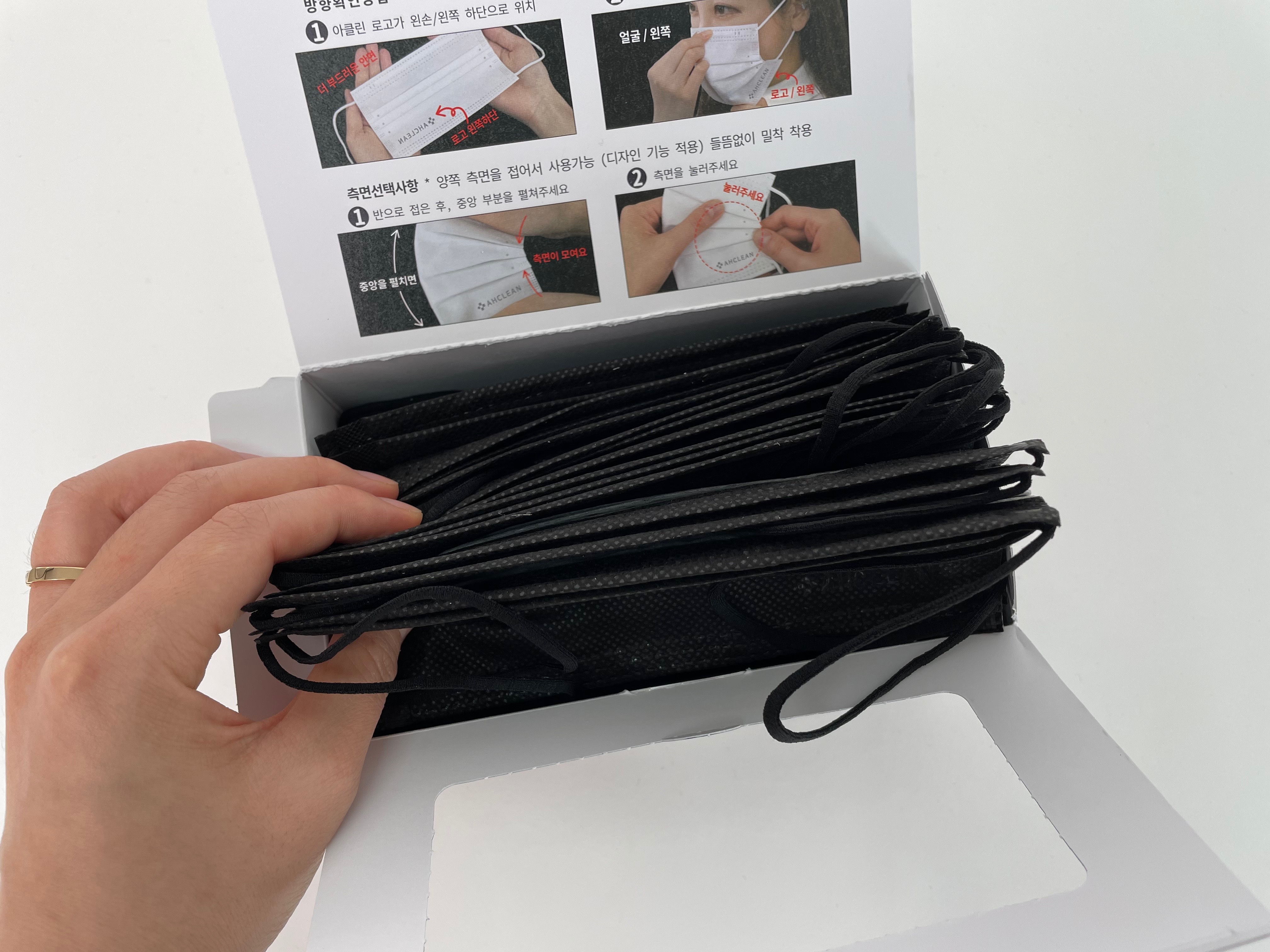 그리고 다른 마스크에 비해서 순하게 작용이 되고 측면 밀착력을 높인 디자인 설계로 특허출원까지 받아서 들뜨는 것도 없어요. 뭔가 착용감은 더 좋은데도 기존 일회용 마스크보다 훨씬 더 괜찮아서 안정감이 있어 꽤 좋았던 것 같아요. 가족들도 다들 편안하다고 이야기를 해서 같이 사용을 하고 있는 중인데요. 뽑아 쓰기 편하게 박싱 되어 있어 보관 자체도 여유로웠답니다. 그리고 제가 덜렁대서 마스크를 항상 거꾸로 쓰는 경우가 있었는데요~ 이건 구분하기 좋게 로고도 쓰여있었어요. 그래서 다른 분들에게도 소개하고 싶었고 제 주변에서도 다들 이거로 바꾼 뒤로 트러블이 없다고 좋아하고 있네요.